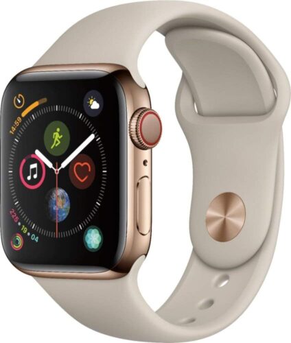 Apple Watch Series 4 (GPS + Cellular, 40MM) – Gold Stainless Steel Case with Stone Sport Band (Renewed)
