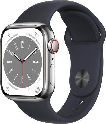 Apple Watch Series 8 (GPS + Cellular, 41MM) – Silver Stainless Steel Case with Midnight Sport Band, M/L (Renewed)