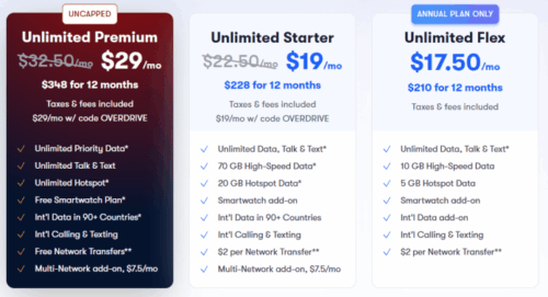 For those ready to switch or upgrade, a promo code (OVERDRIVE) can be applied to lock in the Unlimited Premium plan at $29/month when paid annually.