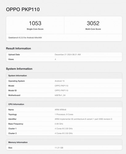 Oppo A5 Pro (PKP110) on Geekbench
