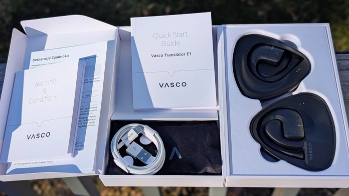 The design of the Vasco Translator E1 prioritizes user comfort. The over-ear fit promotes a secure and hygienic experience, making them suitable for extended wear. They come with a charging case that provides additional power on-the-go and ensures that the earbuds remain ready for use whenever needed.
